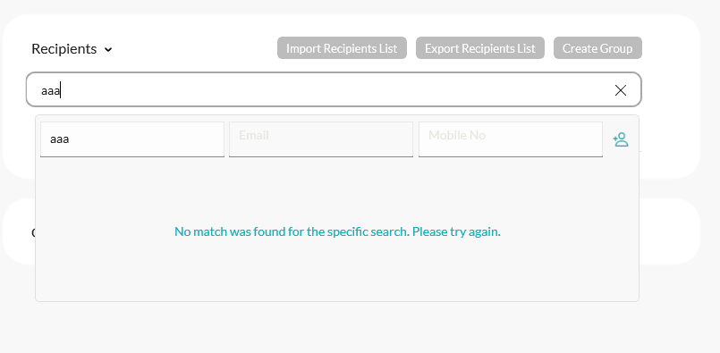<telerikControls:RadAutoComplete x:Name="RecipientsAutoComplete" Grid.ColumnSpan="7" Placeholder="Enter Name, Email or Mobile No" Style="{StaticResource RecipientsFilterAutoComplete}" ItemsSource="{Binding ViewModel.AutoCompleteSource}" SearchThreshold="2" LoadingTemplate="{StaticResource ProgressIndicatorAutoComplete}" NoResultsTemplate="{StaticResource EmptyAutoComplete}" SuggestionItemTemplate="{StaticResource AutoCompleteRow}" CompletionMode="Contains" SuggestMode="SuggestAppend" DisplayMode="Tokens" TextSearchPath="Name" TextChanged="RadAutoComplete_TextChanged"> <DataTemplate x:Key="EmptyAutoComplete"> <Grid RowDefinitions="Auto,*"> <Grid ColumnDefinitions="*,*,*,Auto" Padding="5" ColumnSpacing="5"> <Entry HorizontalOptions="Fill" Placeholder="Name" Text="{Binding ViewModel.RecipientName}" /> <Entry Grid.Column="1" HorizontalOptions="Fill" Placeholder="Email" Text="{Binding ViewModel.RecipientEmail}" /> <Entry Grid.Column="2" HorizontalOptions="Fill" Placeholder="Mobile No" Text="{Binding ViewModel.RecipientMobileNo}" /> <ImageButton Grid.Column="3" BorderColor="Transparent" BackgroundColor="Transparent" Source="{x:Static eres:Images.SharePersonAdd}" WidthRequest="30" HeightRequest="40" Padding="0,10" Command="{Binding AddRecipientCommand}"/> </Grid> <Label Grid.Row="1" Text="No match was found for the specific search. Please try again." HorizontalOptions="Center" VerticalOptions="Center" TextColor="{AppThemeBinding Light={StaticResource Primary}, Dark={StaticResource Dark}}" /> </Grid> </DataTemplate>Hi Arcady,