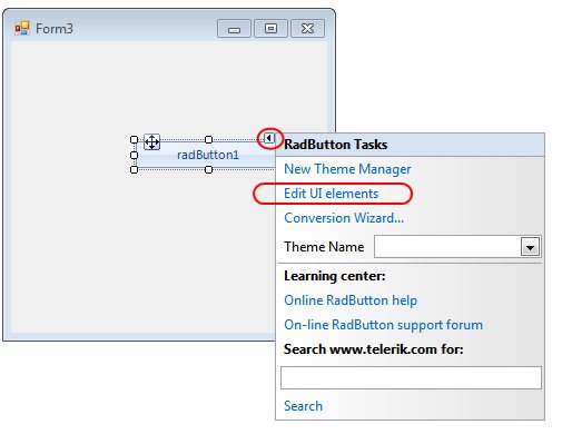 - Click on the smart tag of your RadButton and choose "Edit UI elements"