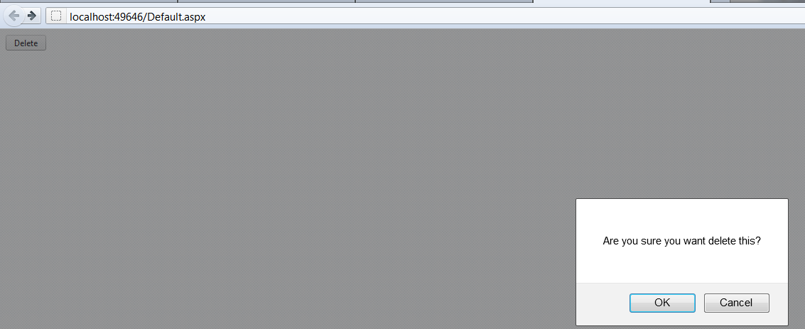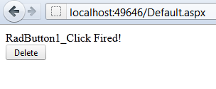 I have set the OnClick to call the button click which is in ASP. It is a delete button, so I wanted to confirm deletion before actually deleting. The OnClientClicked does not fire. For testing purposes, I even removed the OnClientClick andOnClientClicked still does not fire. Here is a snippet of my code: