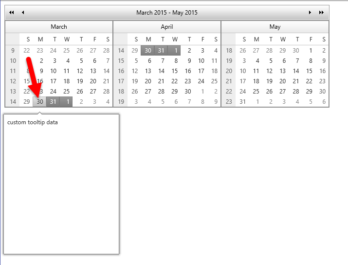 I am having a problem getting my RadTooltips to render on my calendar controls. I have followed the following demo with no problems: http://demos.telerik.com/aspnet-ajax/tooltip/examples/tooltipcalendar/defaultvb.aspx?show-source=true. I was able to run the local sample with no problems but when I translate that to my own page, the "standard" tooltips appear (see attached screenshot), instead of my customized content.
