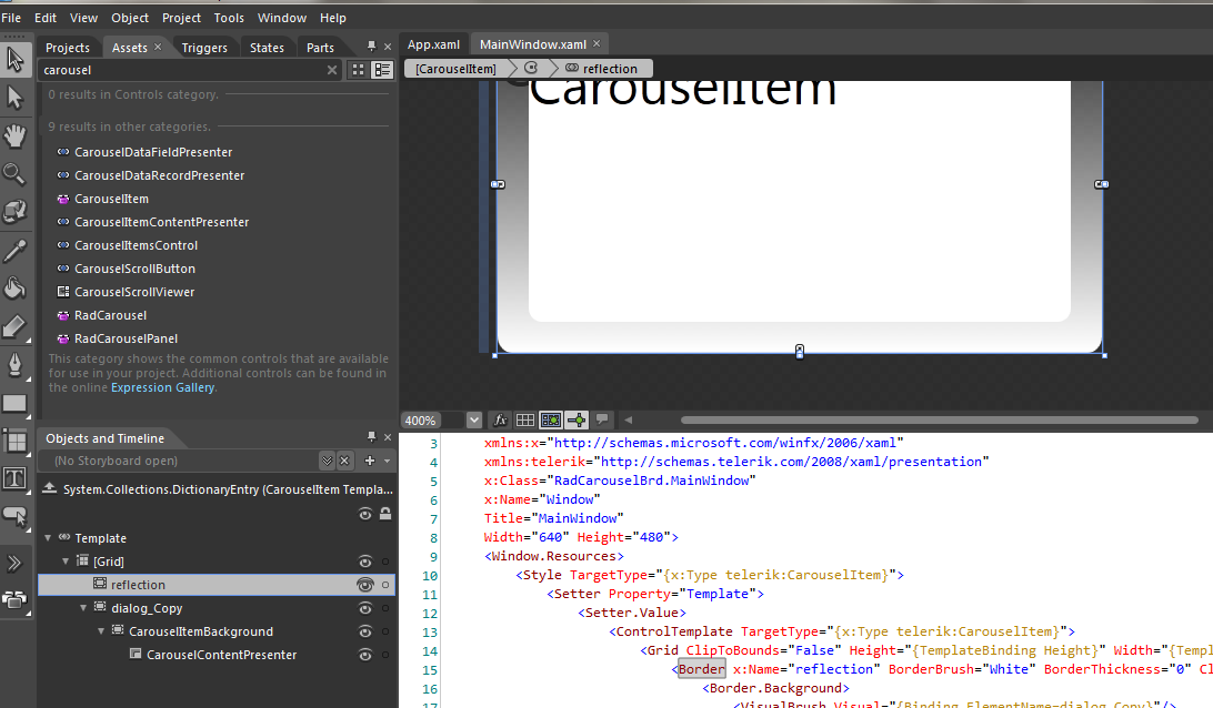 <Style TargetType="telerik:CarouselItem"> <Setter Property="Template"> <Setter.Value> <ControlTemplate TargetType="telerik:CarouselItem"> <Grid> <ContentPresenter Content="{TemplateBinding Content}" ContentTemplate="{TemplateBinding ContentTemplate}"/> </Grid> </ControlTemplate> </Setter.Value> </Setter> </Style>All the best,