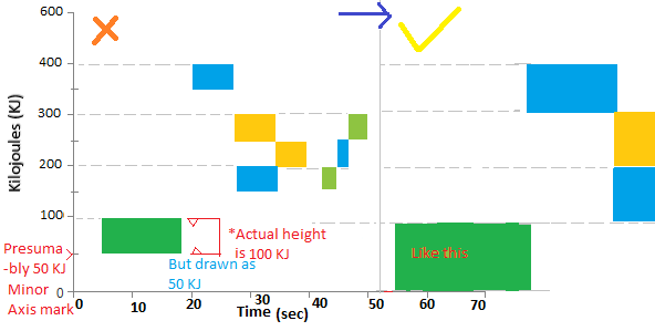That being said, The grid currently performs like the picture attached (left side) whereby the top/upper of plotted rectangle (its "high position" or Y coordinate) is lining up to the Y-axis major axis line, however its thickness or vertical width is only half or a third of the actual major axis line - whereas I'd like to see if it can take up the whole space between major axis points. See Problem_2_plot.png, the rectangles to the left is what it is doing, the bigger rectangles to the right is what I envision it should do.