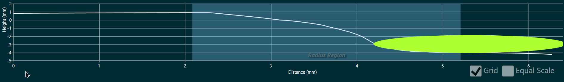 <Style x:Key="ProfileCircleStyle"TargetType="{x:Type tk:CartesianCustomAnnotation}"> <!-- The visual representation is a GreenYellow ellipse --> <Setter Property="ContentTemplate"> <Setter.Value> <DataTemplate DataType="{x:Type tk:CartesianCustomAnnotation}"> <Ellipse Fill="GreenYellow" d:DataContext="{d:DesignInstance {x:Type gci:IProfileOutputCircle}}"> <Ellipse.Width> <!-- Converter only uses first 3 Binding elements. Others are supplied merely to trigger re-evaluation when the related properties change. X-axis minimum is always zero --> <MultiBinding Converter="{StaticResource CvtDataToPixels}" Mode="OneWay"> <Binding ElementName="MyChart"/> <!-- RadCartesianChart --> <Binding Path="Diameter" /> <!-- Diameter in mm --> <Binding Source="{x:Static gcenum:PointElement.X}"/> <!-- Return X pixels, not Y --> <Binding RelativeSource="{RelativeSource FindAncestor, AncestorType={x:Type tk:RadCartesianChart}}" Path="Zoom"/> <Binding RelativeSource="{RelativeSource FindAncestor, AncestorType={x:Type tk:RadCartesianChart}}" Path="HorizontalAxis.(tk:LinearAxis.Maximum)"/> </MultiBinding> </Ellipse.Width> <Ellipse.Height> <!-- Converter only uses first 3 Binding elements. Last two are supplied merely to trigger re-evaluation when the related properties change --> <MultiBinding Converter="{StaticResource CvtDataToPixels}" Mode="OneWay"> <Binding ElementName="MyChart"/> <Binding Path="Diameter" /> <Binding Source="{x:Static gcenum:PointElement.Y}"/> <Binding RelativeSource="{RelativeSource FindAncestor, AncestorType={x:Type tk:RadCartesianChart}}" Path="Zoom"/> <Binding RelativeSource="{RelativeSource FindAncestor, AncestorType={x:Type tk:RadCartesianChart}}" Path="VerticalAxis.(tk:LinearAxis.Minimum)"/> <Binding RelativeSource="{RelativeSource FindAncestor, AncestorType={x:Type tk:RadCartesianChart}}" Path="VerticalAxis.(tk:LinearAxis.Maximum)"/> </MultiBinding> </Ellipse.Height> </Ellipse> </DataTemplate> </Setter.Value> </Setter></Style>