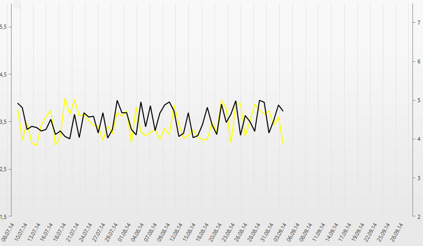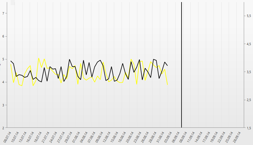<telerik:RadCatresianChart x:Name="cartesianChart"> <radchartview:RadCartesianChart.Behaviors> <chartview:ChartTrackBallBehavior ShowIntersectionPoints="True" /> </radchartview:RadCartesianChart.Behaviors> <radchartview:RadCartesianChart.Annotations> <chartview:CartesianGridLineAnnotation Value="{Binding CurrentDate}" Axis="{Binding ElementName=horizontalAxis}" Stroke="Black" StrokeThickness="2"> </chartview:CartesianGridLineAnnotation> </radchartview:RadCartesianChart.Annotations> <telerik:RadCartesianChart.SeriesProvider> <telerik:ChartSeriesProvider Source="{Binding SuppChart}"> <telerik:ChartSeriesProvider.SeriesDescriptors> <telerik:CategoricalSeriesDescriptor ItemsSourcePath="Data" ValuePath="CurrentValue" CategoryPath="Date"> <telerik:CategoricalSeriesDescriptor.Style> <Style TargetType="chartview:LineSeries"> <Setter Property="StrokeThickness" Value="2"/> <Setter Property="ShowLabels" Value="{Binding ShowLabels}" /> <Setter Property="Visibility" Value="{Binding IsVisible, Converter={StaticResource BoolToVis}}" /> <Setter Property="LegendSettings"> <Setter.Value> <telerik:SeriesLegendSettings Title="{Binding Label}"/> </Setter.Value> </Setter> <Setter Property="Stroke" Value="{Binding Color}" /> <Setter Property="VerticalAxis" Value="{Binding VerticalAxis}"/> </Style> </telerik:CategoricalSeriesDescriptor.Style> </telerik:CategoricalSeriesDescriptor> </telerik:ChartSeriesProvider.SeriesDescriptors> </telerik:ChartSeriesProvider> </telerik:RadCartesianChart.SeriesProvider> <radchartview:RadCartesianChart.HorizontalAxis> <chartview:DateTimeContinuousAxis x:Name="horizontalAxis" PlotMode="BetweenTicks" ShowLabels="True" LabelFormat="{Binding AxisLabel}" MajorTickStyle="{StaticResource tickStyle}" LabelFitMode="Rotate" Minimum="{Binding StartDate}" Maximum="{Binding EndDate}"/> </radchartview:RadCartesianChart.HorizontalAxis></telerik:RadCatresianChart>This is my XAML code. When I change the SuppChart collection (ObservableCollection) the chart isn't render the horizontal axis and annotation. I implement INotifyPropertyChanged and INotifyCollectionChanged. Data are render properly after collection change.