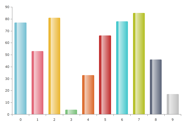 <Style TargetType="telerikCharting:Bar"> <Setter Property="Template" > <Setter.Value> <ControlTemplate TargetType="telerikCharting:Bar"> <Canvas Opacity="0" x:Name="PART_MainContainer"> <Rectangle x:Name="PART_DefiningGeometry" Height="{TemplateBinding ItemActualHeight}" Width="{TemplateBinding ItemActualWidth}" Style="{TemplateBinding ItemStyle}" RadiusX="{StaticResource BarRadiusX}" RadiusY="{StaticResource BarRadiusY}" /> <Rectangle Height="{TemplateBinding ItemActualHeight}" Width="{TemplateBinding ItemActualWidth}" Visibility="{TemplateBinding MaskVisibility}" RadiusX="{StaticResource BarMaskRadius}" RadiusY="{StaticResource BarMaskRadius}" OpacityMask="{StaticResource BarOpacityMaskBrush}" Fill="{StaticResource BarMaskBrush}" Stroke="{StaticResource BarMaskStroke}" StrokeThickness="{StaticResource BarMaskStrokeThickness}" /> <Rectangle x:Name="PART_SelectedState" Height="{TemplateBinding ItemActualHeight}" Width="{TemplateBinding ItemActualWidth}" Visibility="{TemplateBinding MaskVisibility}" RadiusX="{StaticResource BarRadiusX}" RadiusY="{StaticResource BarRadiusY}" Fill="{StaticResource BarTopMaskBrush}" /> <Canvas.RenderTransform> <ScaleTransform x:Name="PART_AnimationTransform" ScaleY="0" /> </Canvas.RenderTransform> </Canvas> </ControlTemplate> </Setter.Value> </Setter> </Style>Let me know whether you need further assistance.