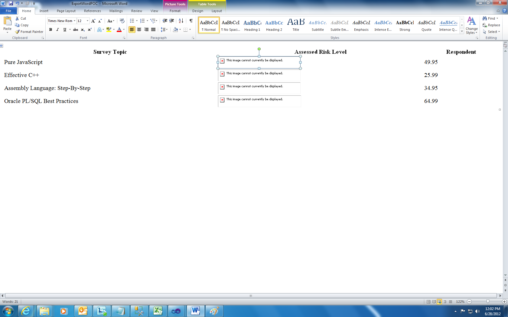 I am using Latest version of Telerik, I am getting this error when I export RadGrid to Word, I am not getting any charts which is in the RadGrid after export to Word. Let me know the solution for this problem