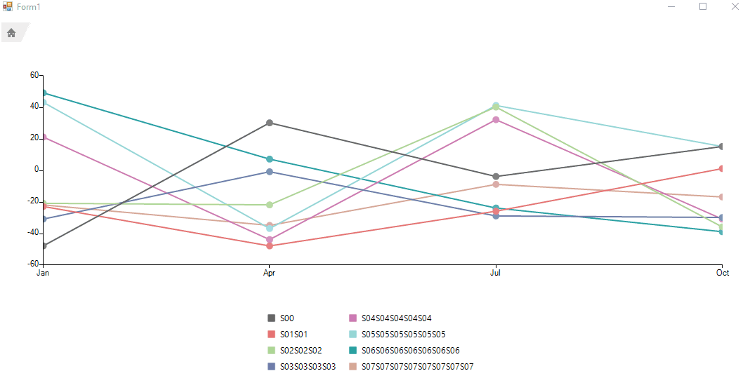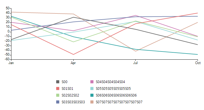 public Form1(){ InitializeComponent(); Random rand = new Random(); StringBuilder sb = new StringBuilder(); for (int i = 0; i < 8; i++) { LineSeries lineSeries = new LineSeries(); sb = new StringBuilder(); for (int j = 0; j < i + 1; j++) { sb.Append("S0" + i); } lineSeries.PointSize = new SizeF(10, 10); lineSeries.LegendTitle = sb.ToString(); lineSeries.DataPoints.Add(new CategoricalDataPoint(rand.Next(-50, 50), "Jan")); lineSeries.DataPoints.Add(new CategoricalDataPoint(rand.Next(-50, 50), "Apr")); lineSeries.DataPoints.Add(new CategoricalDataPoint(rand.Next(-50, 50), "Jul")); lineSeries.DataPoints.Add(new CategoricalDataPoint(rand.Next(-50, 50), "Oct")); this.radChartView1.Series.Add(lineSeries); } this.radChartView1.ShowLegend = true; this.radChartView1.ChartElement.LegendPosition = LegendPosition.Bottom; DrillDownController drillControler = new DrillDownController(); this.radChartView1.Controllers.Add(drillControler); radChartView1.Views.AddNew("Revenue by Month"); this.radChartView1.Drill += RadChartView1_Drill; this.radChartView1.ShowDrillNavigation = true;}private void RadChartView1_Drill(object sender, DrillEventArgs e){ e.View.Series.Clear(); e.View.Axes.Clear(); Random rand = new Random(); switch (e.Level) { case 0: for (int i = 0; i < 8; i++) { LineSeries lineSeries = new LineSeries(); StringBuilder sb = new StringBuilder(); sb = new StringBuilder(); for (int j = 0; j < i + 1; j++) { sb.Append("S0" + i); } lineSeries.PointSize = new SizeF(10, 10); lineSeries.LegendTitle = sb.ToString(); lineSeries.DataPoints.Add(new CategoricalDataPoint(rand.Next(-50, 50), "Jan")); lineSeries.DataPoints.Add(new CategoricalDataPoint(rand.Next(-50, 50), "Apr")); lineSeries.DataPoints.Add(new CategoricalDataPoint(rand.Next(-50, 50), "Jul")); lineSeries.DataPoints.Add(new CategoricalDataPoint(rand.Next(-50, 50), "Oct")); e.View.Series.Add(lineSeries); } break; case 1: if (e.SelectedPoint != null) for (int i = 0; i < 8; i++) { LineSeries lineSeries = new LineSeries(); StringBuilder sb = new StringBuilder(); sb = new StringBuilder(); for (int j = 0; j < i + 1; j++) { sb.Append("S0" + i + DateTime.Now.ToLongTimeString()); } lineSeries.PointSize = new SizeF(10, 10); lineSeries.LegendTitle = sb.ToString(); lineSeries.DataPoints.Add(new CategoricalDataPoint(rand.Next(-50, 50), "Jan")); lineSeries.DataPoints.Add(new CategoricalDataPoint(rand.Next(-50, 50), "Apr")); lineSeries.DataPoints.Add(new CategoricalDataPoint(rand.Next(-50, 50), "Jul")); lineSeries.DataPoints.Add(new CategoricalDataPoint(rand.Next(-50, 50), "Oct")); e.View.Series.Add(lineSeries); } break; } }class MyChart : RadChartView{ protected override RadChartElement CreateChartElement() { return new MyChartElement(); }}class MyChartElement : RadChartElement{ protected override ChartLegendElement CreateChartLegendElement() { return new MyLegendElement(this); } protected override ChartWrapper CreateChartWrapperElement() { return new CustomChartWrapper(); } protected override Type ThemeEffectiveType { get { return typeof(RadChartElement); } }}public class CustomChartWrapper : ChartWrapper{ public override bool DrillDown(DataPoint point) { bool result = base.DrillDown(point); ((MyLegendElement)((RadChartView)this.ElementTree.Control).ChartElement.LegendElement).ResetLegend(); return result; } public override bool DrillUp() { bool result = base.DrillUp(); ((MyLegendElement)((RadChartView)this.ElementTree.Control).ChartElement.LegendElement).ResetLegend(); return result; } public override bool DrillToIndex(int viewIndex) { bool result= base.DrillToIndex(viewIndex); ((MyLegendElement)((RadChartView)this.ElementTree.Control).ChartElement.LegendElement).ResetLegend(); return result; }}class MyLegendElement : ChartLegendElement{ StackLayoutElement leftPanel = new StackLayoutElement(); StackLayoutElement rightPanel = new StackLayoutElement(); public MyLegendElement(RadChartElement chartElement) : base(chartElement) { } protected override void CreateChildElements() { base.CreateChildElements(); this.StackElement.Orientation = System.Windows.Forms.Orientation.Horizontal; } protected override void OnLegendInfosCollectionChanged(Telerik.WinControls.Data.NotifyCollectionChangedEventArgs e, bool providerChange) { ResetLegend(); } public void ResetLegend() { this.StackElement.Children.Clear(); if (!this.StackElement.Children.Contains(leftPanel)) { this.StackElement.Children.Add(leftPanel); leftPanel.Orientation = System.Windows.Forms.Orientation.Vertical; } if (!this.StackElement.Children.Contains(rightPanel)) { this.StackElement.Children.Add(rightPanel); rightPanel.Orientation = System.Windows.Forms.Orientation.Vertical; } leftPanel.Children.Clear(); rightPanel.Children.Clear(); for (int i = 0; i < this.Provider.LegendInfos.Count; i++) { LegendItemElement element = this.OnVisualItemCreating(this.Provider.LegendInfos[i]); if (i < this.Provider.LegendInfos.Count / 2) { leftPanel.Children.Add(element); } else { rightPanel.Children.Add(element); } } } protected override Type ThemeEffectiveType { get { return typeof(ChartLegendElement); } }}I hope this information helps.