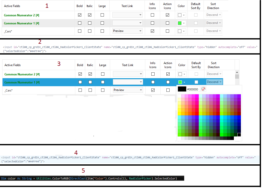 I have a project thats contain RadColorPicker. I need to change text color according the chosen one. inspect shows me the wrong color. Process steps;