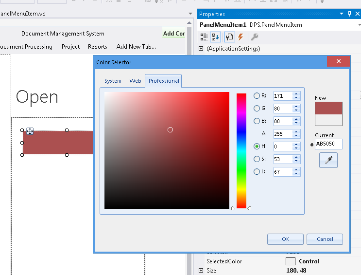 So, ages ago I built my own Color Selector that I use to replace that thing in the IDE but then I discovered Telerik controls a few years back and it hits me! There's a VERY NICE color selector in these controls which does everything my ancient one did PLUS it includes Web and System colors.