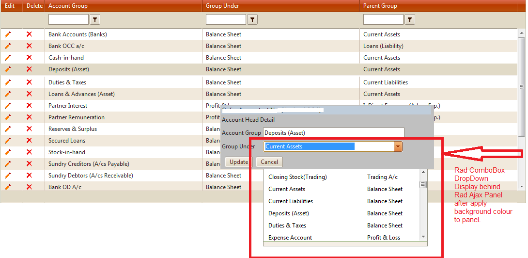 Radcombobox Dropdown display behind RadAjaxPanel (after applying css to ajax panel)