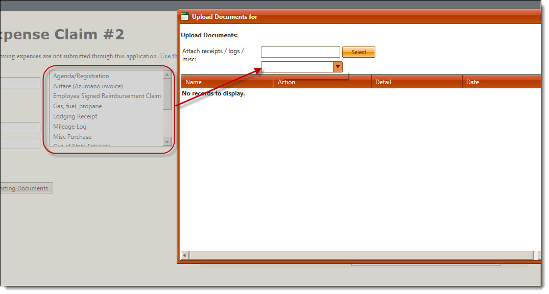 See attached image with the dropdown portion displayed behind the bind the popup (as circled).
