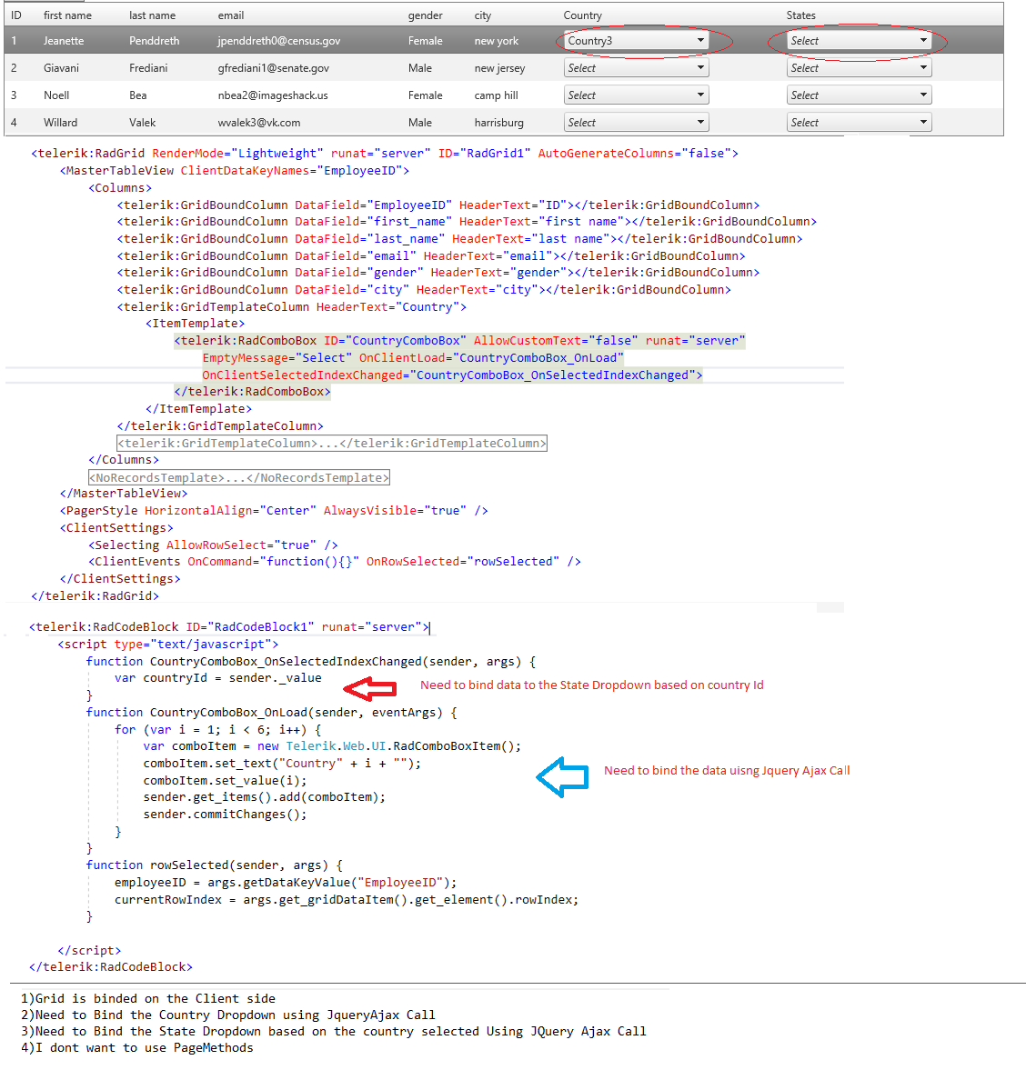 3)Need to Bind the State Dropdown based on the country selected Using JQuery Ajax Call