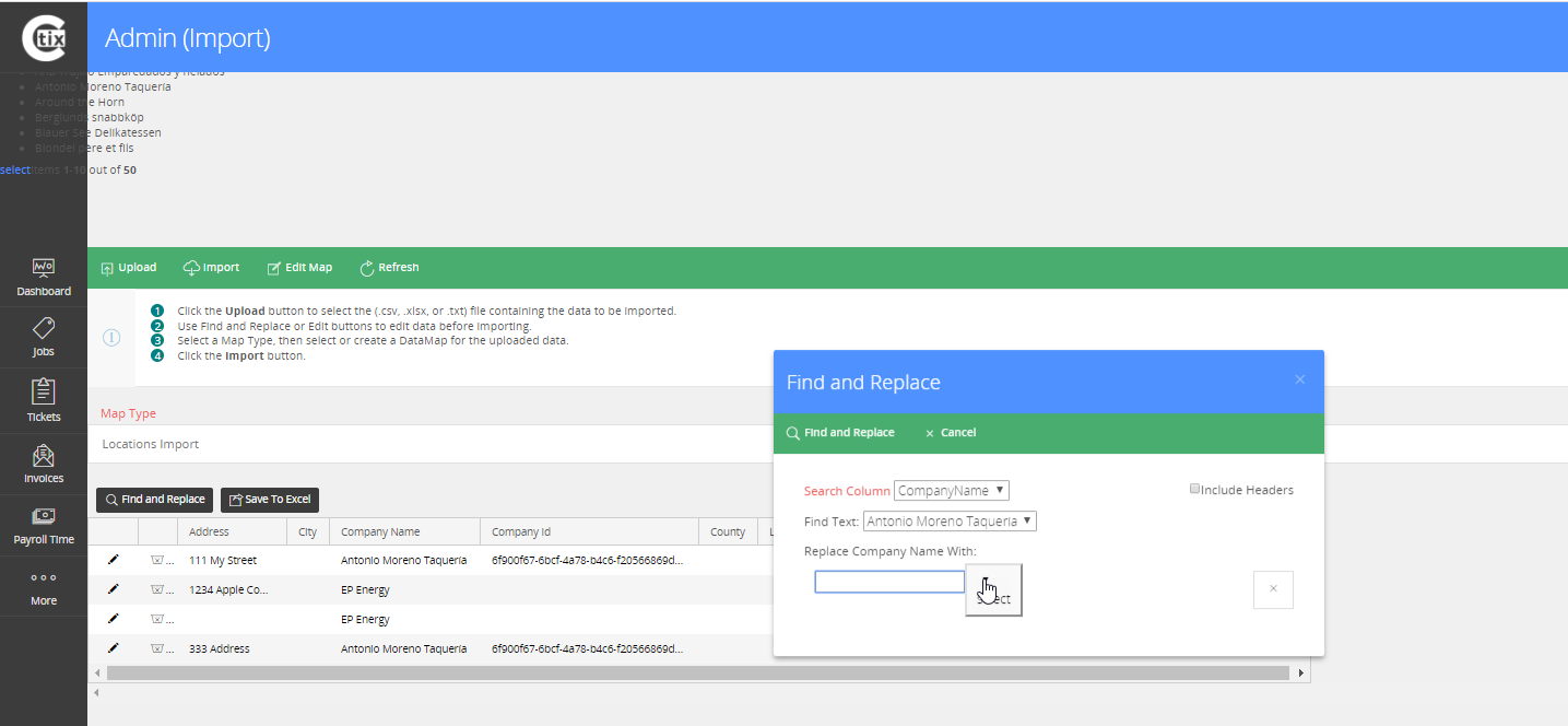 <div id="modalFindAndReplace" class="md-modal colored-header custom-width md-effect-9 primary"> <div class="md-content"> <div class="modal-header"> <button type="button" data-dismiss="modal" aria-hidden="true" class="close md-close"><i class="icon s7-close"></i></button> <h3 class="modal-title">Find and Replace</h3> </div> <div class="panel panel-alt3 panel-transparent"> <div class="panel-heading panel-heading-cg"> <button runat="server" id="btnSearchandReplace" data-dismiss="modal" type="button" class="btn btn-alt3" onserverclick="btnSearchandReplace_ServerClick" ><i class="icon s7-search"></i> Find and Replace</button> <button type="button" id="btnCancelTargetField" data-dismiss="modal" class="btn btn-alt3 md-close" runat="server"><i class="icon s7-close"></i> Cancel</button> </div> </div> <div class="modal-body form"> <div class="panel-body" style="margin: 0 auto;"> <div> <asp:UpdatePanel runat="server" > <ContentTemplate> <div class="form-group"> <span> <label for="ddlSearchColumn" class="control-label text-danger">Search Column</label> <asp:DropDownList runat="server" ID="ddlSearchColumn" AutoPostBack="true" OnSelectedIndexChanged="ddlSearchColumn_SelectedIndexChanged"></asp:DropDownList></span> <span class="pull-right"> <asp:CheckBox ID="CheckBox1" runat="server" Text="Include Headers" /></span> </div> <div class="form-group" id="divSearchText" runat="server"> <label for="txtSearchText" class="control-label">Find Text:</label> <asp:TextBox ID="txtSearchText" runat="server" CssClass="form-control" ></asp:TextBox> </div> <div class="form-group" id="divSearchList" runat="server" visible="false"> <label for="ddlSearchList" class="control-label">Find Text:</label> <asp:DropDownList runat="server" ID="ddlSearchList"></asp:DropDownList> </div> <div class="form-group" id="replaceWithTextBox" runat="server"> <label for="txtReplaceText" class="control-label">Replace With:</label> <asp:TextBox ID="txtReplaceText" runat="server" CssClass="form-control" ></asp:TextBox> </div> <div class="form-group" id="divAssetType" runat="server" visible="false"> <label for="ddlReplaceAssetType" class="control-label">Replace Asset Type Name With:</label> <asp:DropDownList runat="server" ID="ddlReplaceAssetType"></asp:DropDownList> </div> <div class="form-group" id="divAssetStatus" runat="server" visible="false"> <label for="ddlReplaceStatus" class="control-label">Replace Status With:</label> <asp:DropDownList runat="server" ID="ddlReplaceStatus"></asp:DropDownList> </div> <div class="form-group" id="divAssetUsage" runat="server" visible="false"> <label for="ddlReplaceUsage" class="control-label">Replace Usage Type With:</label> <asp:DropDownList runat="server" ID="ddlReplaceUsage"></asp:DropDownList> </div> <div class="form-group" id="divChargeType" runat="server" visible="false"> <label for="ddlReplaceChargeType" class="control-label">Replace Charge Type With:</label> <asp:DropDownList runat="server" ID="ddlReplaceChargeType"></asp:DropDownList> </div> <div class="form-group" id="divPositionList" runat="server" visible="false"> <label for="ddlPositionList" class="control-label">Replace Position List Name With:</label> <asp:DropDownList runat="server" ID="ddlPositionList"></asp:DropDownList> </div> <div class="form-group" id="divAssets" runat="server" visible="false"> <label for="ddlAssets" class="control-label">Replace Asset Name With:</label> <asp:DropDownList runat="server" ID="ddlAssets"></asp:DropDownList> </div> <div class="form-group" id="divPayrollTime" runat="server" visible="false"> <label for="ddlPayrollTime" class="control-label">Replace Generates Payroll Time With:</label> <asp:DropDownList runat="server" ID="ddlPayrollTime"></asp:DropDownList> </div> <div class="form-group" id="divPayrollTimeFor" runat="server" visible="false"> <label for="ddlPayrollTimeFor" class="control-label">Replace Generates Payroll Time For With:</label> <asp:DropDownList runat="server" ID="ddlPayrollTimeFor"></asp:DropDownList> </div> <div class="form-group" id="divUOM" runat="server" visible="false"> <label for="ddlUOM" class="control-label">Replace Charge Item Unit of Measure Name With:</label> <asp:DropDownList runat="server" ID="ddlUOM"></asp:DropDownList> </div> <div class="form-group" id="divCompany" runat="server" visible="false"> <label for="cmbCompany">Replace Company Name With:</label> <div class="input-group"> <telerik:RadComboBox DropDownAutoWidth="Enabled" RenderMode="Lightweight" ID="cmbCompany" EmptyMessage="Type to Select..." runat="server" Width="100%" EnableLoadOnDemand="true" AllowCustomText="true" ShowMoreResultsBox="true" EnableVirtualScrolling="true" > <WebServiceSettings Method="GetCompanies" Path="~/Portal/Ajax/COGS.asmx" /> </telerik:RadComboBox> <span class="input-group-btn"> <button runat="server" id="btnClearCompany" type="button" class="btn btn-default" onclick="javascript:ClearCompany();" title="Clear Selected Customer"><span class="s7-close" style="font-size: 20px;"></span></button> </span> </div> <asp:TextBox ID="hidCompany" runat="server" Style="display: none;"></asp:TextBox> </div> </div> </ContentTemplate> </asp:UpdatePanel> </div> </div> </div> </div></div>