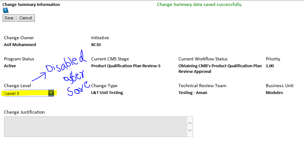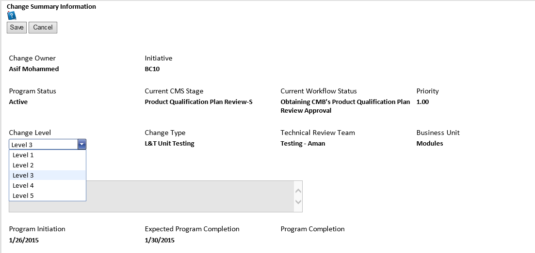 I have page named change Summary where I have a radcombobox named " Change Level " .