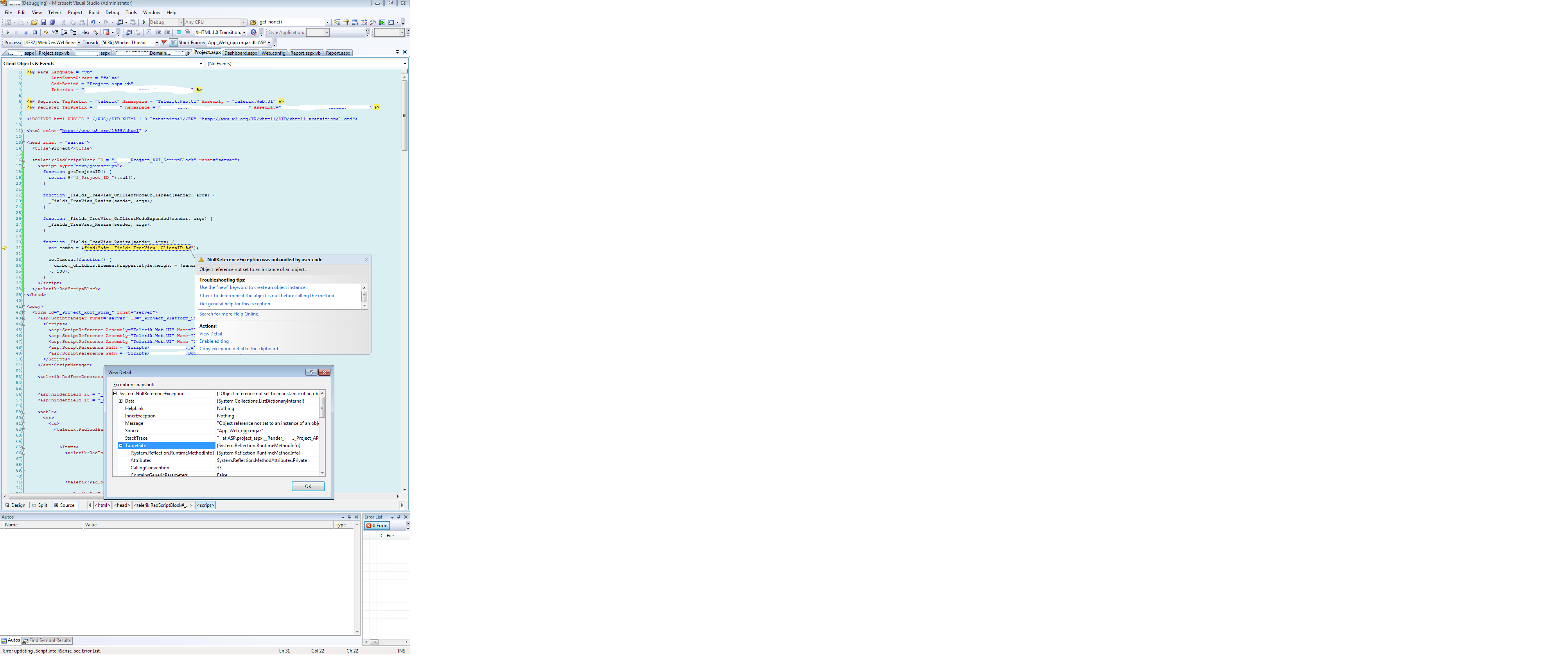 | [HttpException (0x80004005): Please, see whether wrapping the code block, generating the exception, within RadCodeBlock resolves the error.] |
