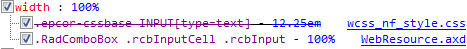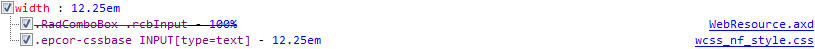 But it led us to the root of the issue; the width of the rcb INPUT is being overridden by one of our base css file. This did not happen in the 2012.1.215.35, currently we are running on the latest 2013.2.717.35