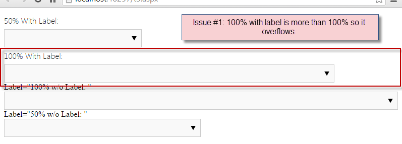 I have an application that uses RadComboBoxes. I have noticed several issues regarding the width and labels. I have created two testing scenarios to demonstrate some of the