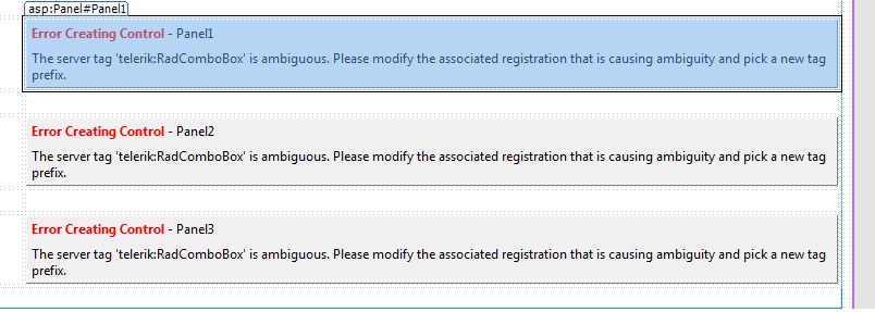 The server tag 'telerik:RadComboBox' is ambiguous. Please modify the associated registration that is causing ambiguity and pick a new tag prefix. |