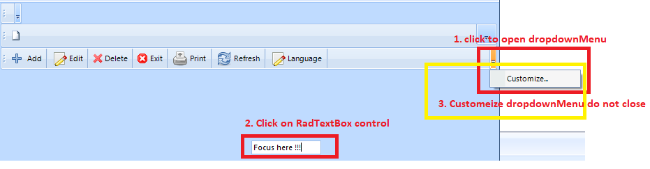 And then, my mouse click on another control on my form, but I see that RadCommandBar's DropdownMenu do not close.