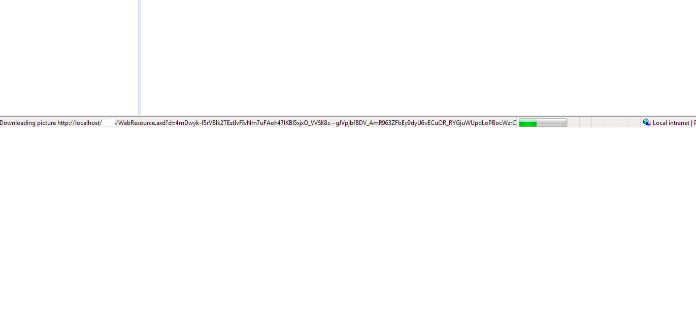 I encounter a very weird problem; I have a page which basically kills my IIS 7.5 (Win7 X32) - requesting it takes very, very long time with a non-ending message "downloading picture nfeswr;t3e4uiowugbhhzfxdcb nvdzf.hgdx .... WebResource.axd blah...blah"; in the end IIS process blocks and I have to restart the service. Requesting the same page from the Visual Studio 2008 development server works fast and without any issues; do you have a clue about what can cause this behaviour?