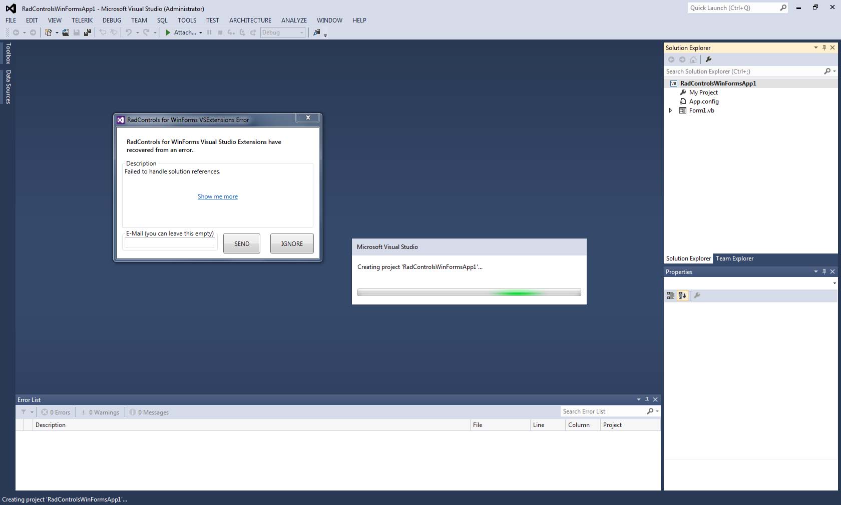 Whenever I want to create new project as "RadControls Windows Forms Application" it shows me an error message.