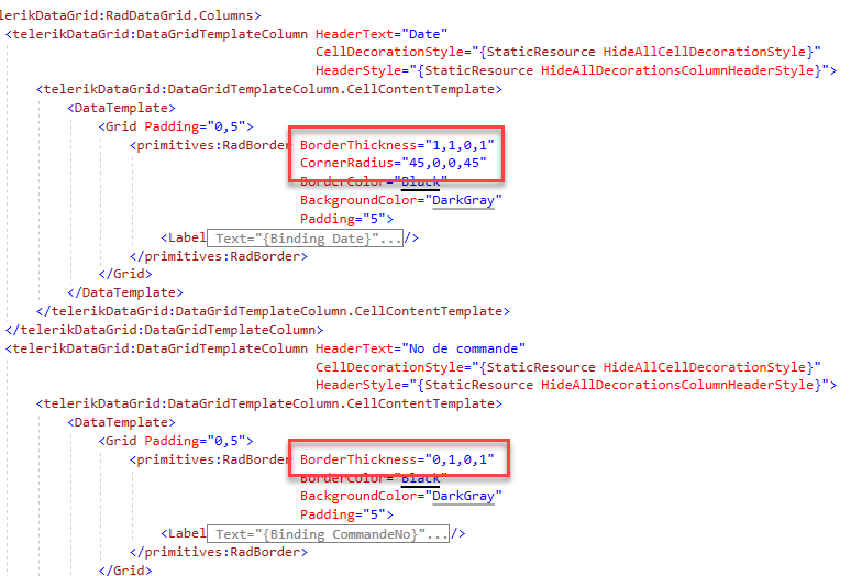 When it comes to getting the rows to have a wrap around curved border, this will take some custom design work. Custom app design falls outside the scope of Telerik support, however, I've been able to go outside those bounds and provide you with a prototype (attached) you can use to get started with.