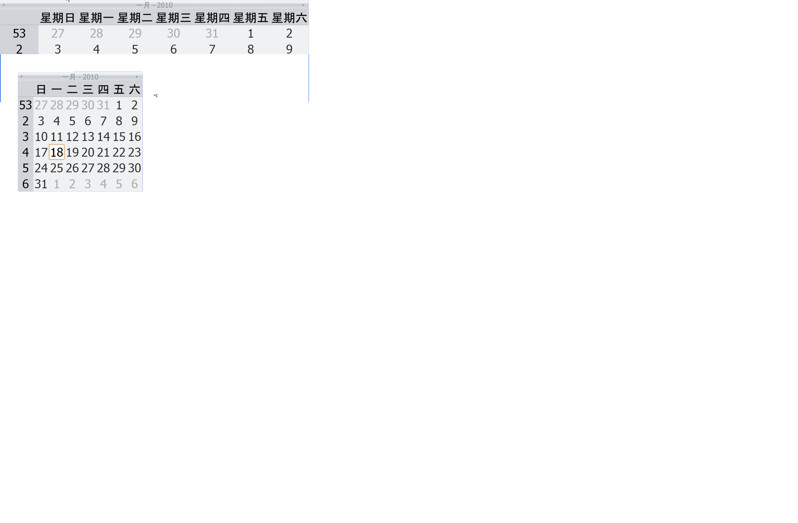 2) directly using the calendar control itself