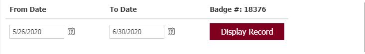 <table class="table" id="tlSearch"> <thead> <tr> <th id="thFromDate">From Date</th> <th id="thToDate">To Date</th> <th id="badgeno"> <asp:Label ID="lblSelectedBadgeNo" runat="server" Text="" Font-Bold="true"></asp:Label> </th> </tr> </thead> <tbody> <tr> <td data-th="From Date"> <telerik:RadDatePicker ID="dtAttendanceFrom" runat="server"></telerik:RadDatePicker> <asp:RequiredFieldValidator ID="rfvDateFrom" runat="server" ControlToValidate="dtAttendanceFrom" CssClass="validator" ValidationGroup="gRequired" ErrorMessage="*" ToolTip="Date From is Required!"> </asp:RequiredFieldValidator> </td> <td data-th="To Date"> <telerik:RadDatePicker ID="dtAttendanceTo" runat="server"></telerik:RadDatePicker> <asp:RequiredFieldValidator ID="rfvAttendanceTo" runat="server" ControlToValidate="dtAttendanceTo" CssClass="validator" ValidationGroup="gRequired" ErrorMessage="*" ToolTip="Date From is Required!"> </asp:RequiredFieldValidator> </td> <td> <asp:Button CssClass="Button" ID="btnLoadAttendance" ValidationGroup="gRequired" CausesValidation="true" runat="server" Text="Display Record" OnClick="btnLoadAttendance_Click"> </asp:Button> </td> </tr> </tbody></table>
