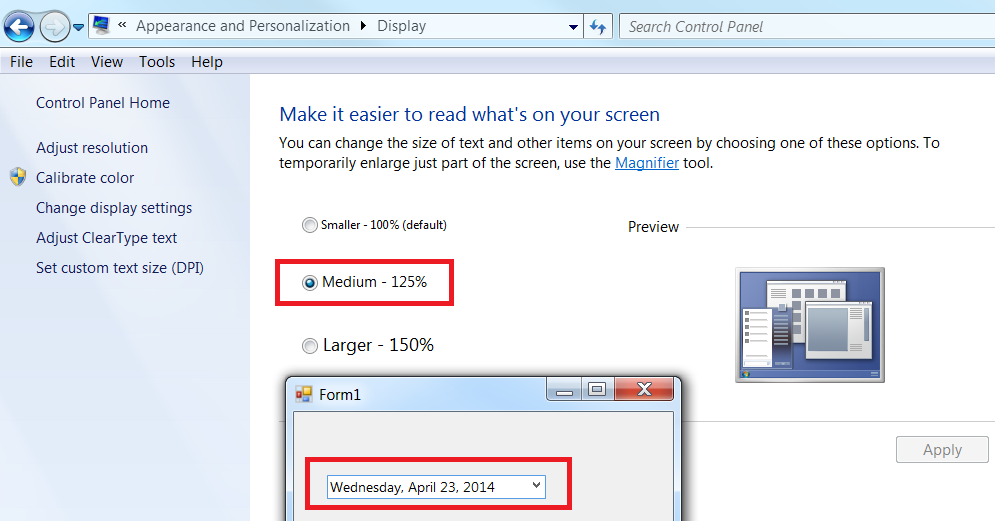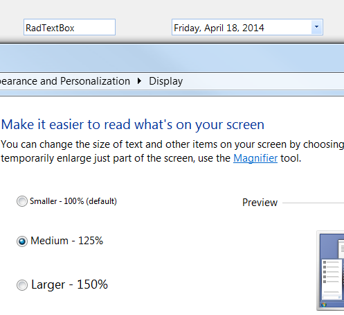 The RadDateTimePicker does not resize when the screen is set to 125%.