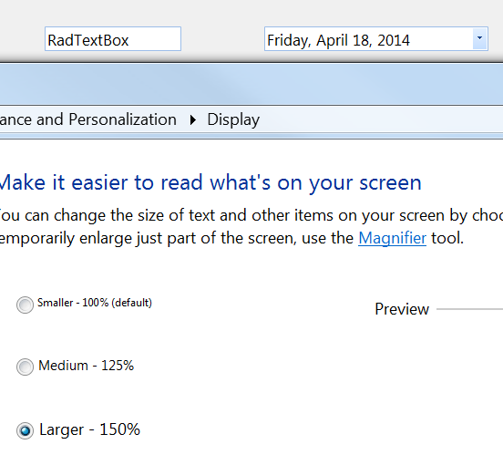 Still the scaling does not work correctly when using a RadDateTimePicker, while the RadTextBox scales fine.