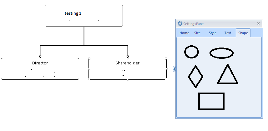 The SettingsPane control is not designed to offer customizing the shape of a RadDiagramShape. I would recommend you to have a look at our Demo application >> Diagram >> First Look example which is quite useful for getting started experience. Try to select a shape and use the RadPropertyGrid on the right side to change the Shape. To access the Live Demo simply click on the Windows Start button and type WinForms Demo. If you are not able to find the Live Demos using that approach you can also download it directly from here.