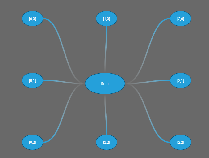 public class GradientConnection : RadDiagramConnection{ private readonly LinearGradientBrush grad; private readonly Color startColor; private readonly Color endColor; public GradientConnection() { this.grad = Application.Current.Resources["Grad"] as LinearGradientBrush; //not that you the start/end are frozen and cannot be reused if (this.grad == null) throw new Exception("Connection gradient template not found."); this.startColor = this.grad.GradientStops[0].Color; this.endColor = this.grad.GradientStops[1].Color; var startStop = new GradientStop(this.startColor, 0); var endStop = new GradientStop(this.endColor, 1); this.grad = new LinearGradientBrush(new GradientStopCollection(new[] { startStop, endStop })); } protected override void Update(bool isManipulating = false) { base.Update(isManipulating); var b = this.StartPoint; var e = this.EndPoint; var sx = (e.X - b.X); var sy = (e.Y - b.Y); var startPoint = new Point(0, 0); var endPoint = new Point(0, 0); if (Math.Abs(sx) < Utils.Epsilon) //vertical { if (Math.Abs(sy) < Utils.Epsilon) // as good as zero length { // doesn't matter as the visual is as good as epsilon-like } else if (sy > 0) //N->S { startPoint = new Point(0, 0); endPoint = new Point(0, 1); } else //S->N { startPoint = new Point(0, 1); endPoint = new Point(0, 0); } } else if (sx > 0) // NE or SE { if (Math.Abs(sy) < Utils.Epsilon) // horizontal E->W { startPoint = new Point(1, 0); endPoint = new Point(0, 0); } else if (sy > 0) //NE->SW { startPoint = new Point(0, 0); endPoint = new Point(1, 1); } else //SE->NW { startPoint = new Point(0, 1); endPoint = new Point(1, 0); } } else // NW or SW { if (Math.Abs(sy) < Utils.Epsilon) // horizontal W->E { startPoint = new Point(0, 0); endPoint = new Point(1, 0); } else if (sy > 0) //NW->SE { startPoint = new Point(1, 0); endPoint = new Point(0, 1); } else //SW->NE { startPoint = new Point(1, 1); endPoint = new Point(0, 0); } } this.grad.StartPoint = startPoint; this.grad.EndPoint = endPoint; this.Stroke = this.grad; }}The "Grad" is simply a way to allow changing the colors in XAML but you could define a set of custom properties as well of course.To use this custom connection simply use something like: