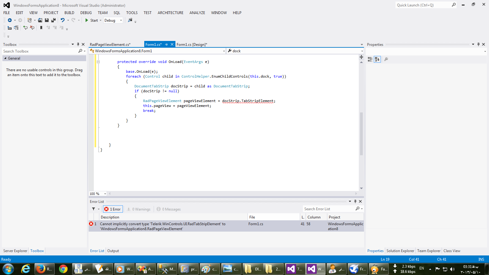 i have a big problem . i use raddock for my project.as u know when it show a form it becomes a tab in raddock,when these document tab open,they have an order. user can change the order of these tabs by dragging them, my problem is that i want to save this layout and the order of these tabs when close the application and open it again, i have written code for this problem to save these order in xml and load it when the application open,but its not ok when number of tabs got over the space of raddock.please notice that my raddock is right to left.