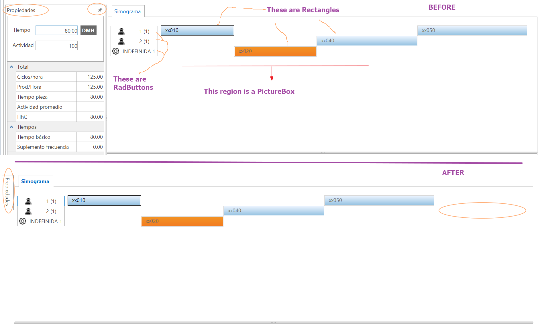 Can you please suggest what strategy should I apply for when the Properties "panel" collapses and the content of the "Simogram" is resized?