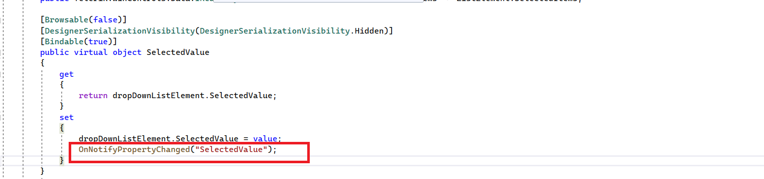 How to disable the ' OnNotifyPropertyChanged("SelectedValue");' call in RadDropDownList, when assigning the 'SelectedValue' its keep on triggered.