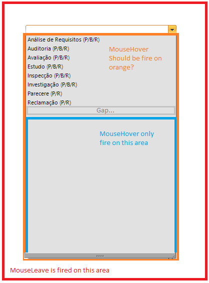 Is any reason the MouseHover event of the ListElement of the DropDown Control only fire when I'm not above any of the List Items?
