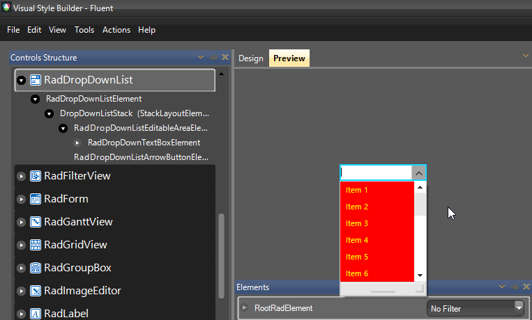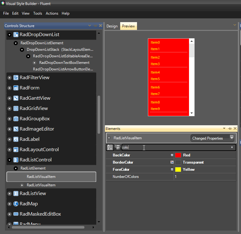 Where can I find the foreground and background colors for the items displayed in a raddropdownlist ?