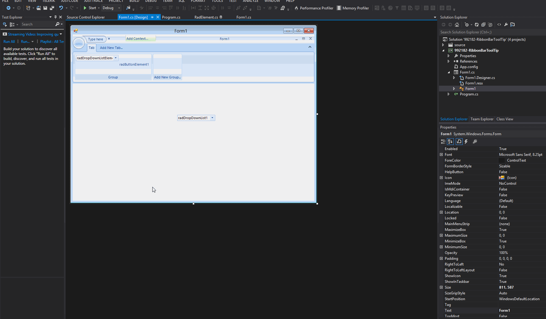 I am trying to add a tooltip to a RadDropDownListElement embedded in a Ribbonbar.