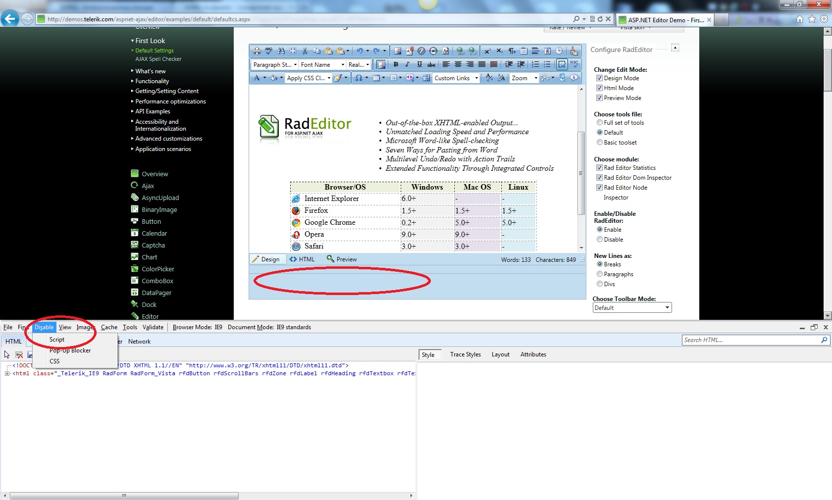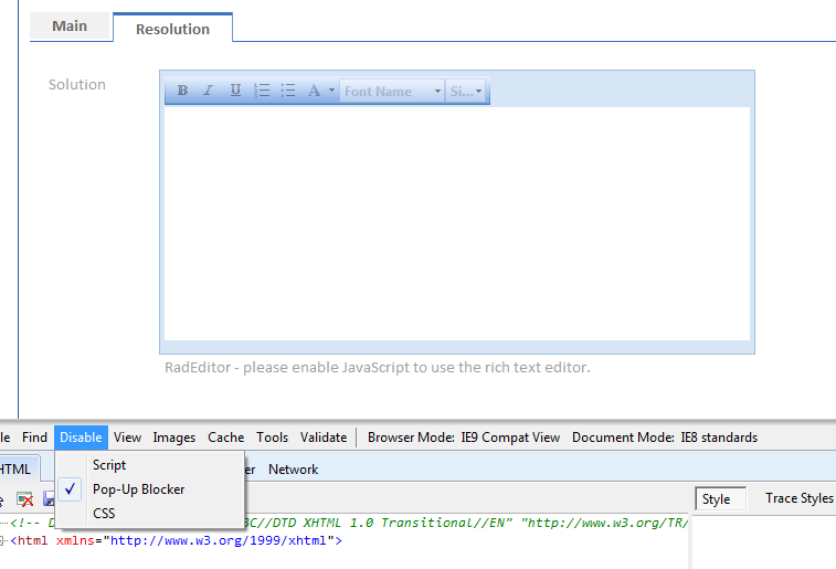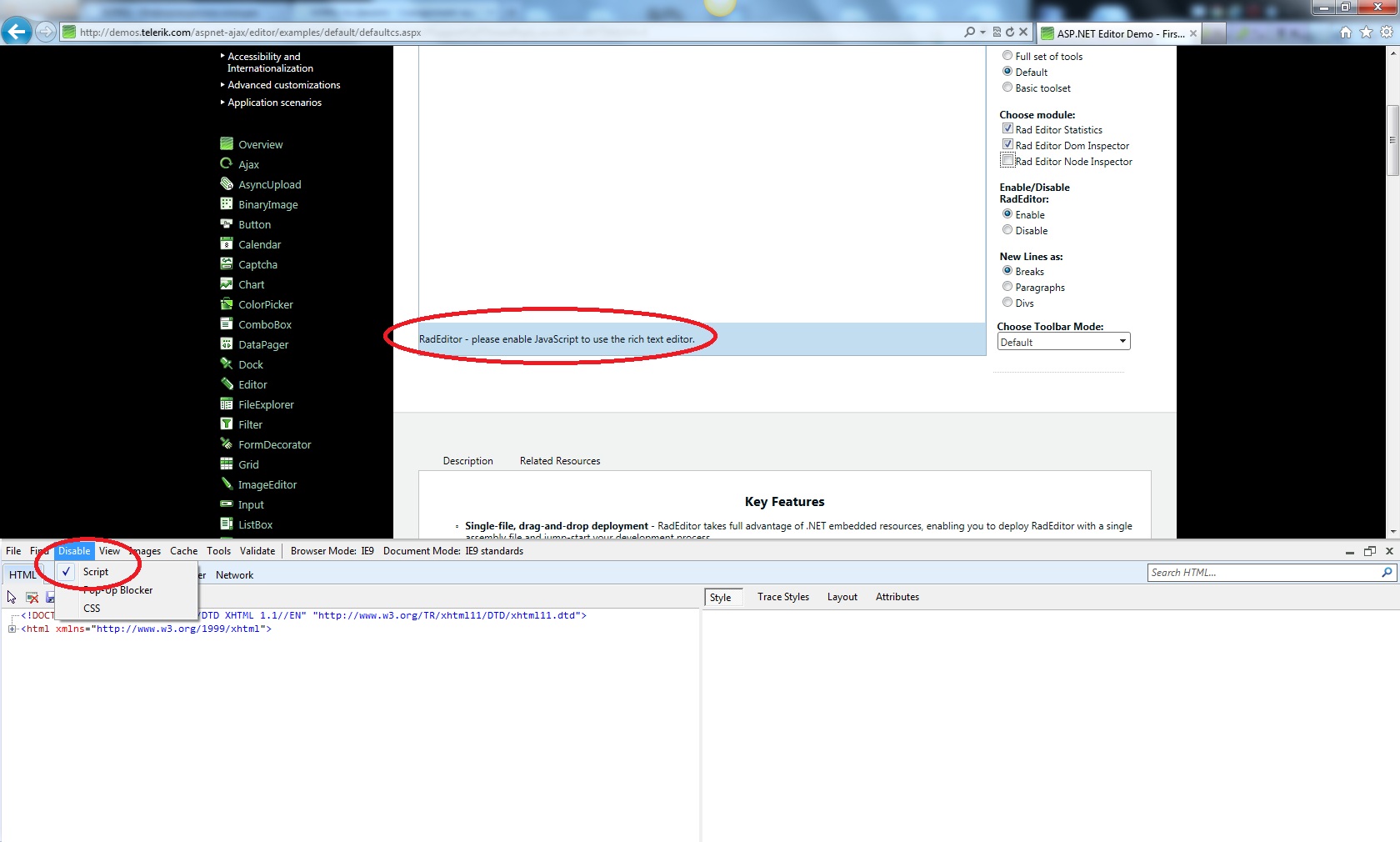 I'm experiencing a weird issue in radeditor (v2010.2.826.35) in my aspx pages. Following message appears just under the editor in preview mode: