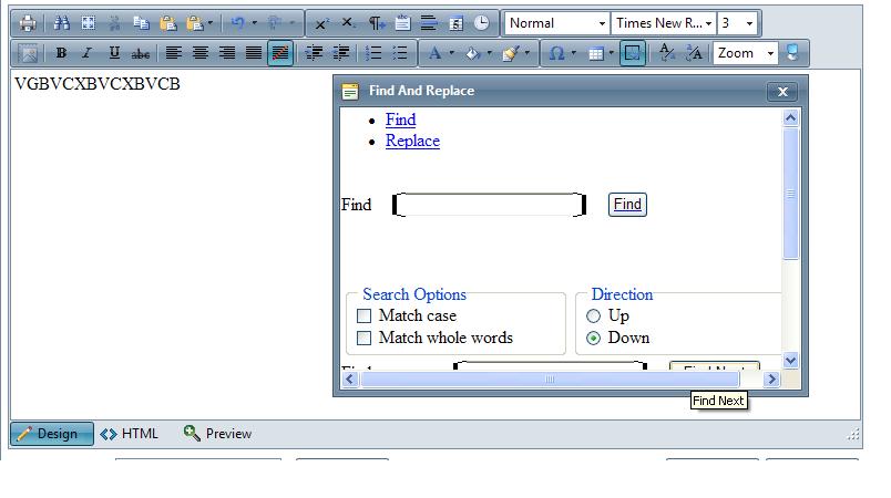 Pls find the attached jpg which shows how our radeditor find&replace dialog gets rendered on the screen. we're missing the tabs for find and replace and we're getting find options and replace options in the same dialog.