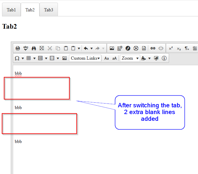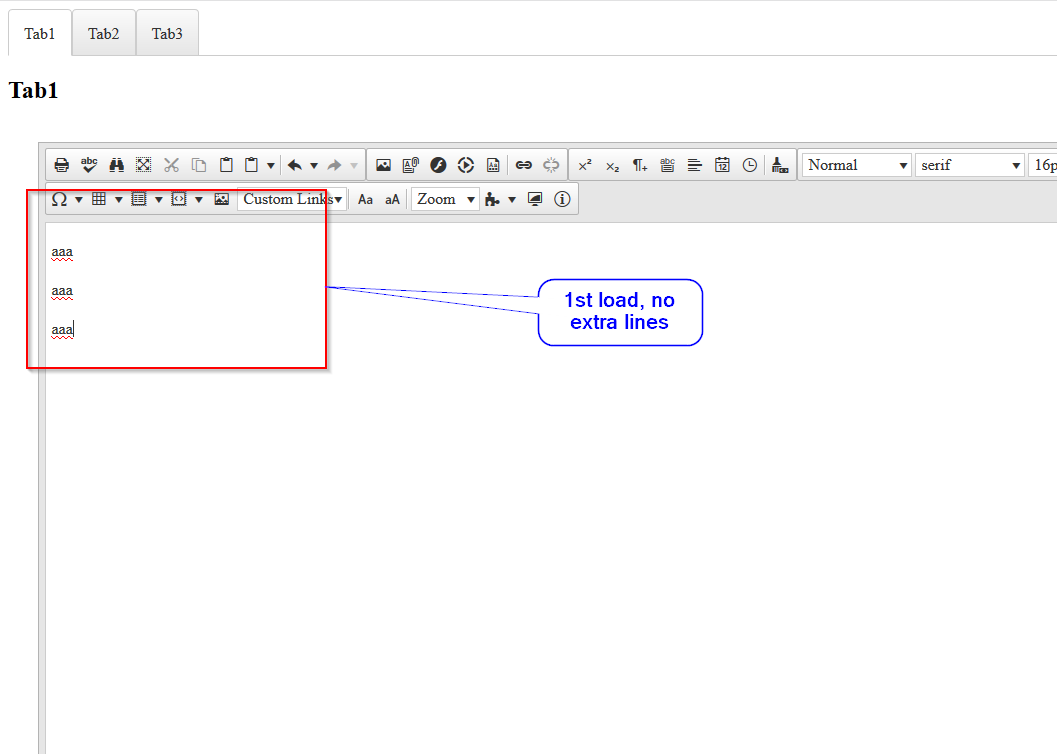 1. When the page loads, before switching tabs, write few lines in editor. Each line is rendered correct with no extra blank lines between.