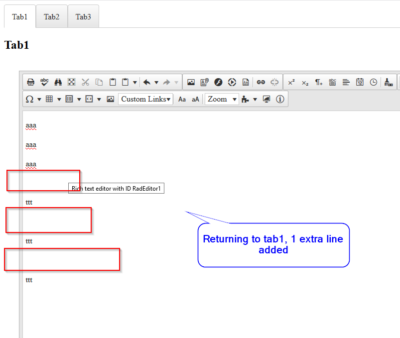 - Each RadPageView control having a RadEditor in it. Doesn't matter NewLineMode: P, Div.