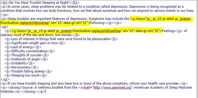 I have no idea what a g tag is, but somehow it's getting added to my content when I click save. I attached a screenshot of the HTML view of the editor we are using to show the classes, etc. that are being added. Can someone please help? I'm not sure what to do.