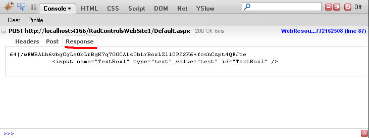 - Using a newer version of the RadControls (Telerik.Web.UI.dll v2010.1.309 (Distributed with Dnn 5.4.2) & v2010.1.607 (last release)) doesn't change the null Response either.