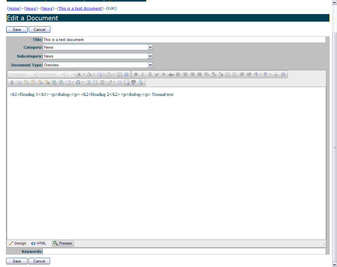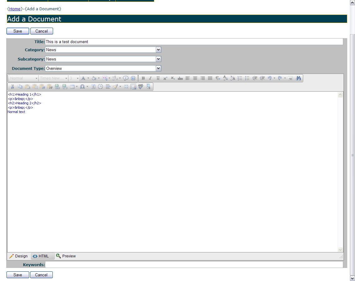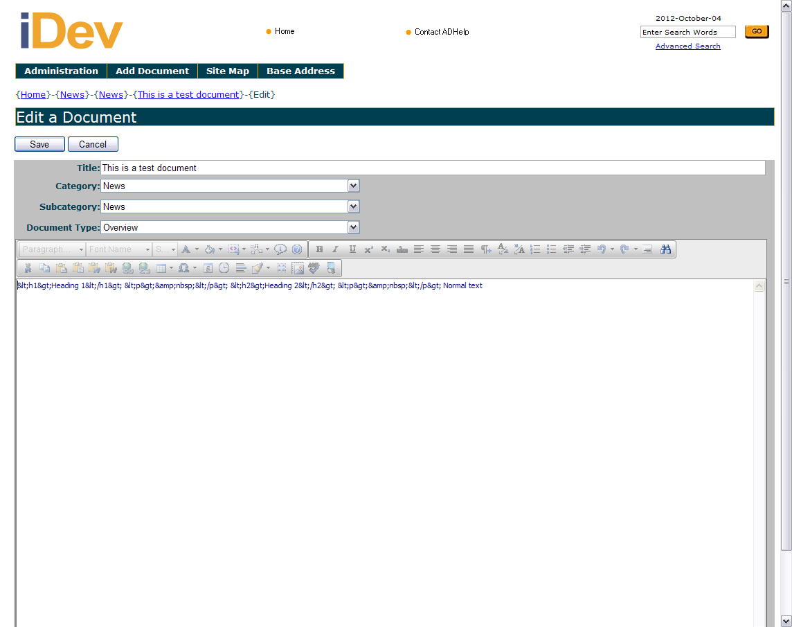 I have RadEditor working just fine to add new documents. However, I'm having problems with editing documents.