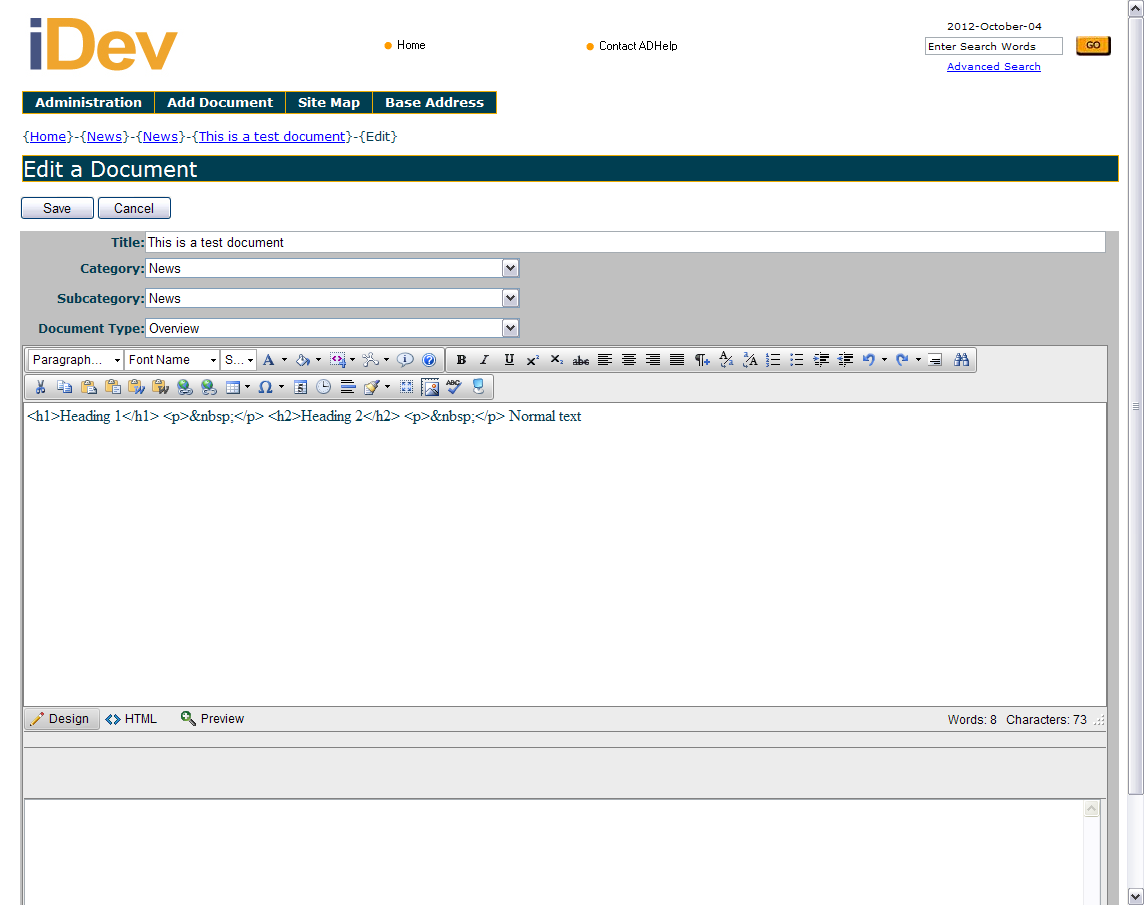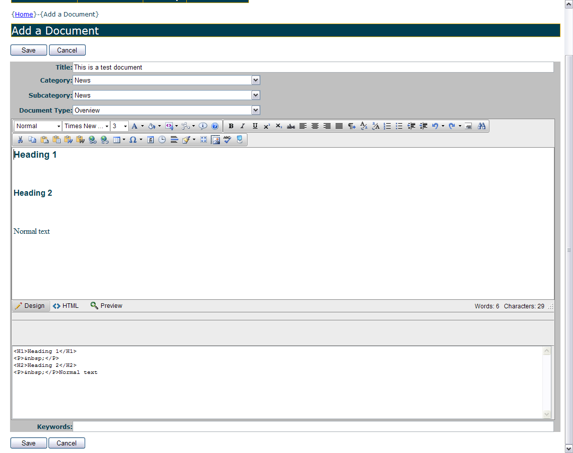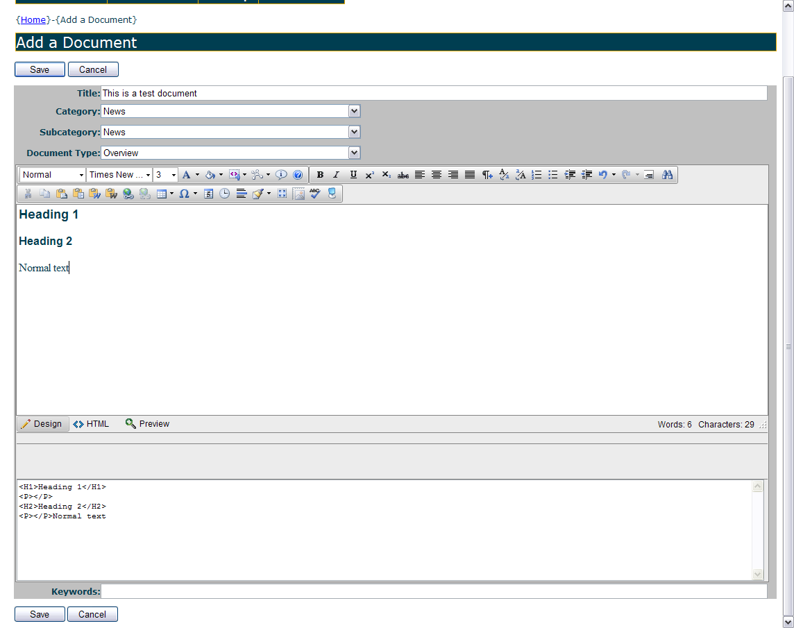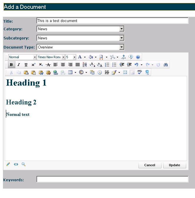 I have RadEditor working just fine to add new documents. However, I'm having problems with editing documents.