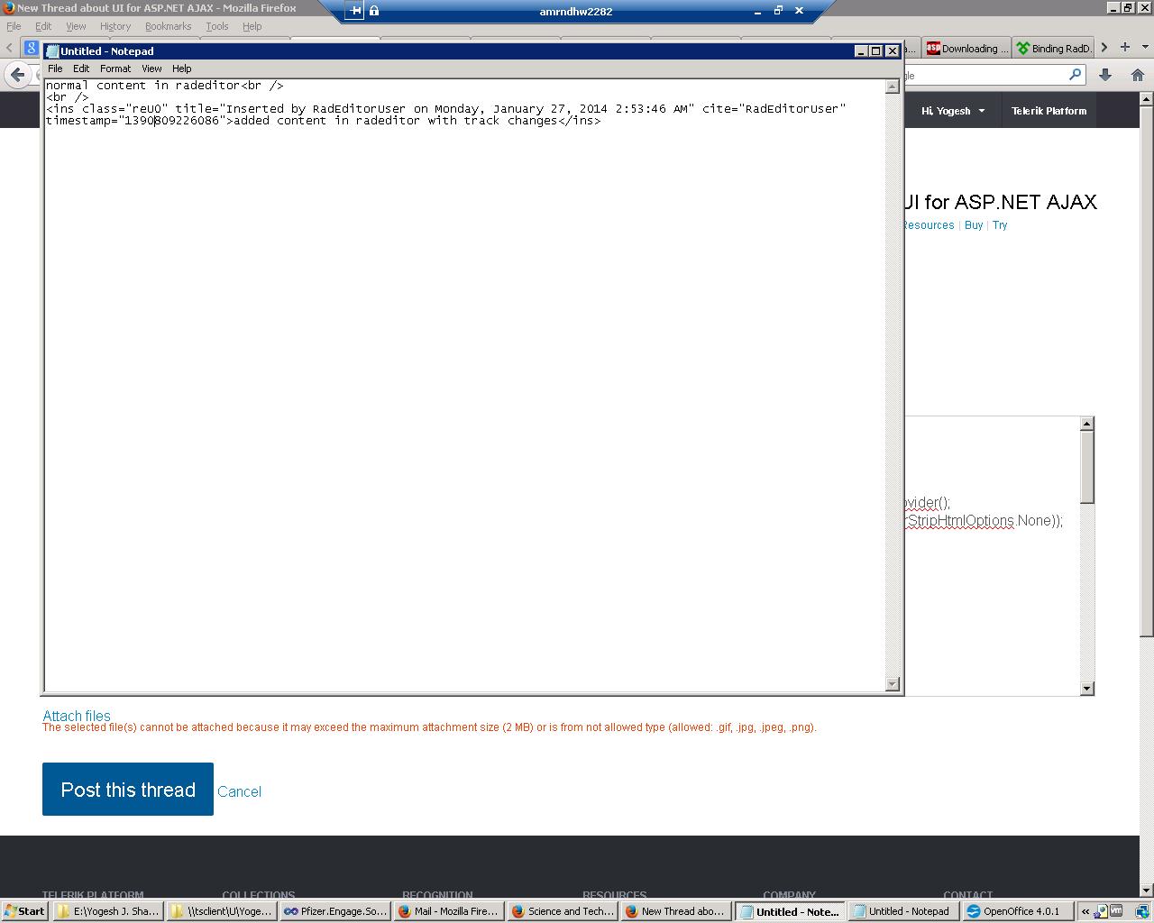 1. The exported Word file only displays the "normal" content which was entered in RadEditor. Content which was entered with "track changes" in not exported at all.