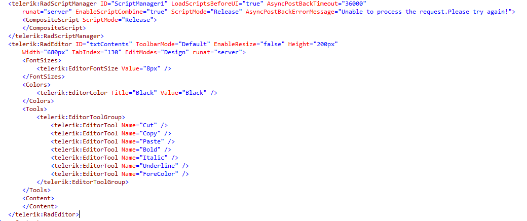 Issue : Partial HTML is not displaying properly in my radeditor control
