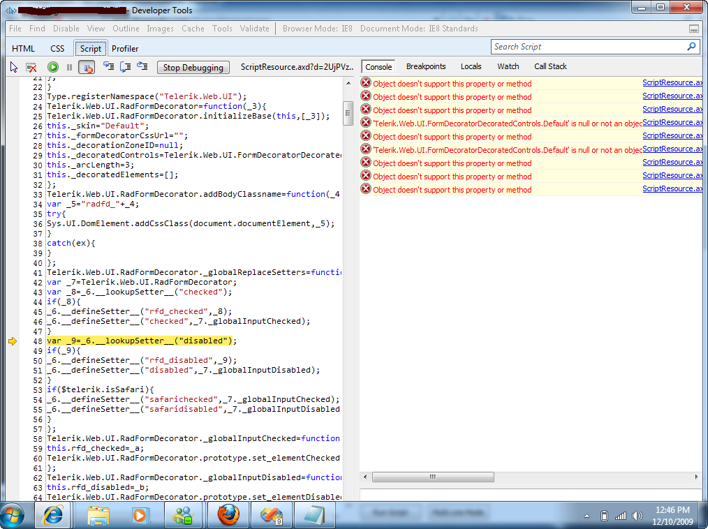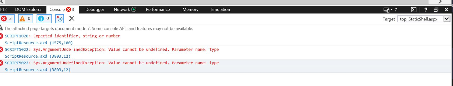 2.Is Document mode IE7 not compatible with Telerik R3 2020.3.915.45?