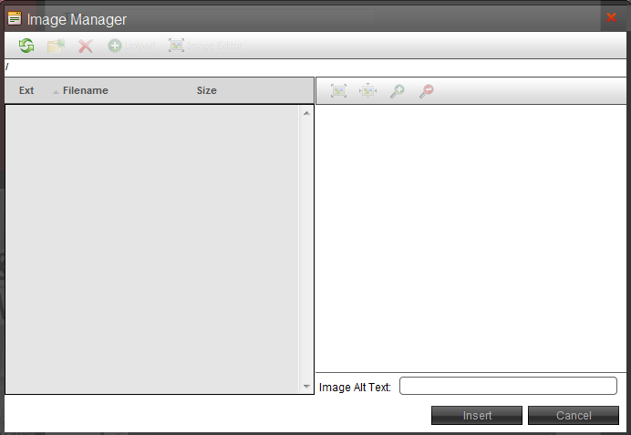 I am having a problem getting the Image Manager dialog to work. All buttons are disabled on Image Manager dialog except Refresh button works. my code below: